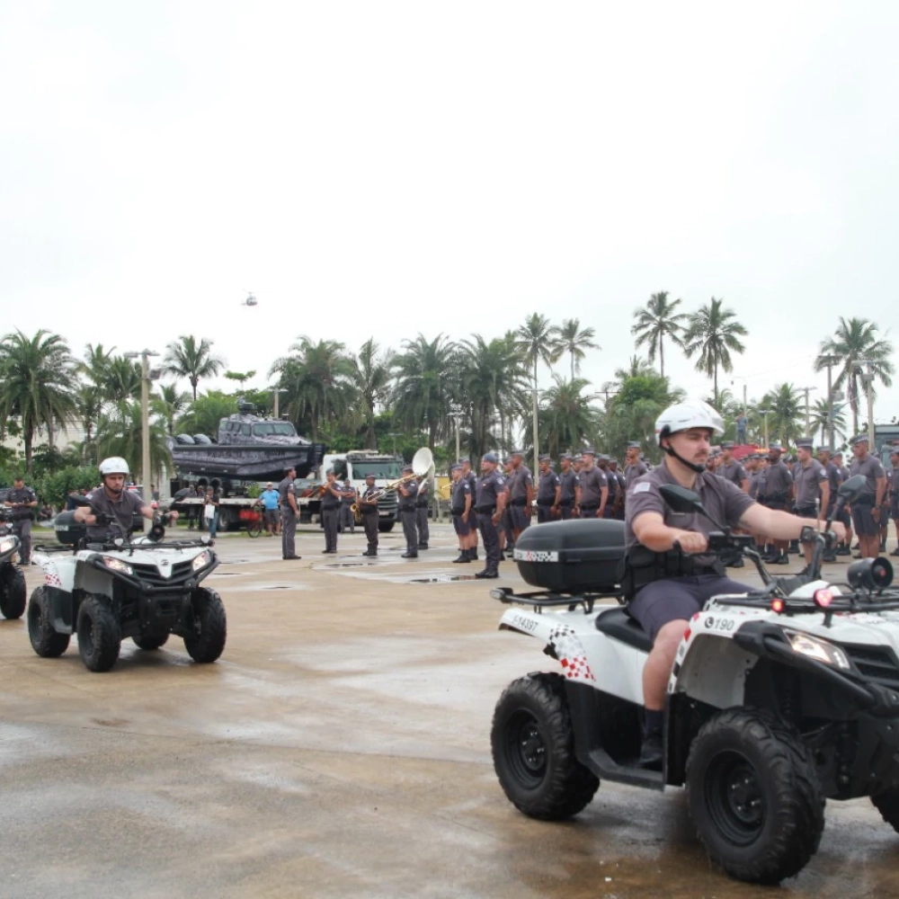 Ao todo, 2.939 policiais militares estão empenhados no reforço do patrulhamento nas cidades litorâneas, sendo 2.395 na região da Baixada Santista e 654 para o Litoral Norte. Parte desse efetivo é composta por 896 soldados que se formaram no último dia 15. Para execução das atividades, os PMs têm o apoio de 390 viaturas, duas embarcações, cinco aeronaves e quatro drones.
