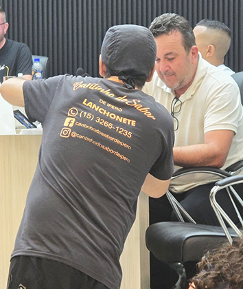 E depois de 4 horas seguidas de audiência Pública, bateu aquela fome nos vereadores e não teve jeito... prestes a começar a sessão Ordinária, tiveram que chamar o delivery... afinal, todo mundo fica mal humorado com fome e ainda tinha uma sessão inteira pela frente! E durante a sessão teve mais pedidos de delivery! Depois falam da nossa resenha pós-sessão... pelo menos não é durante a sessão!